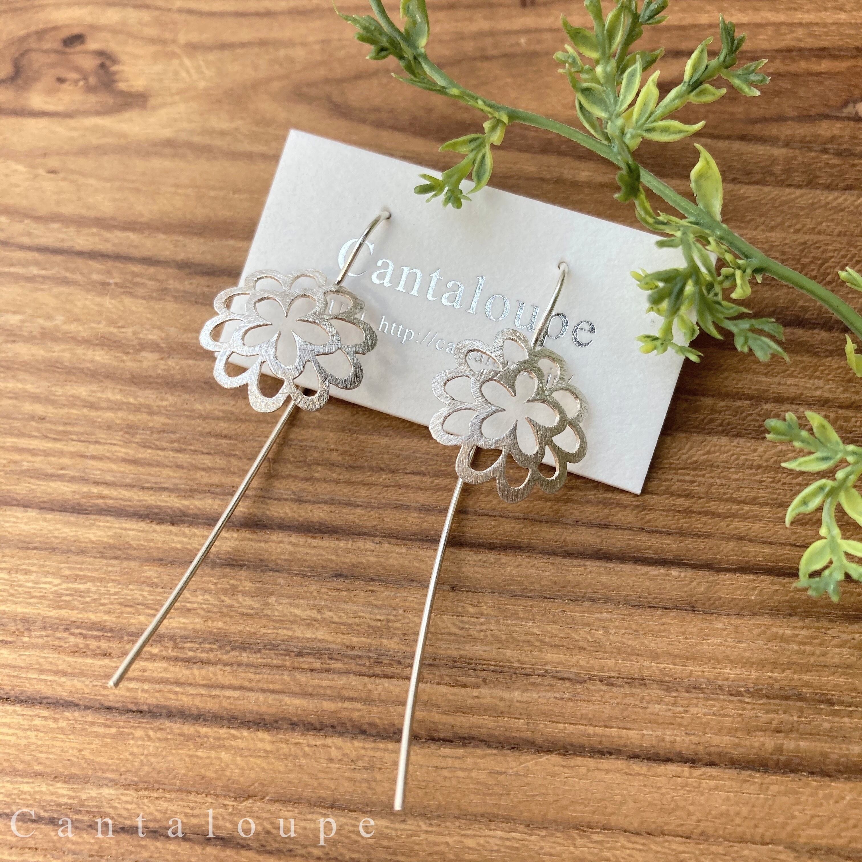 シルバーピアス【マット加工】ロングフラワーデザイン