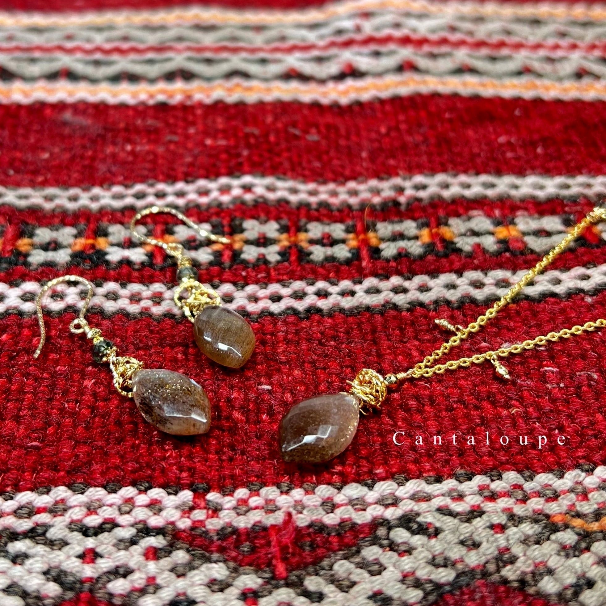 チョコレート色のムーンストーンが素敵なネックレスです♪ ほんのりバイカラーになっています。
