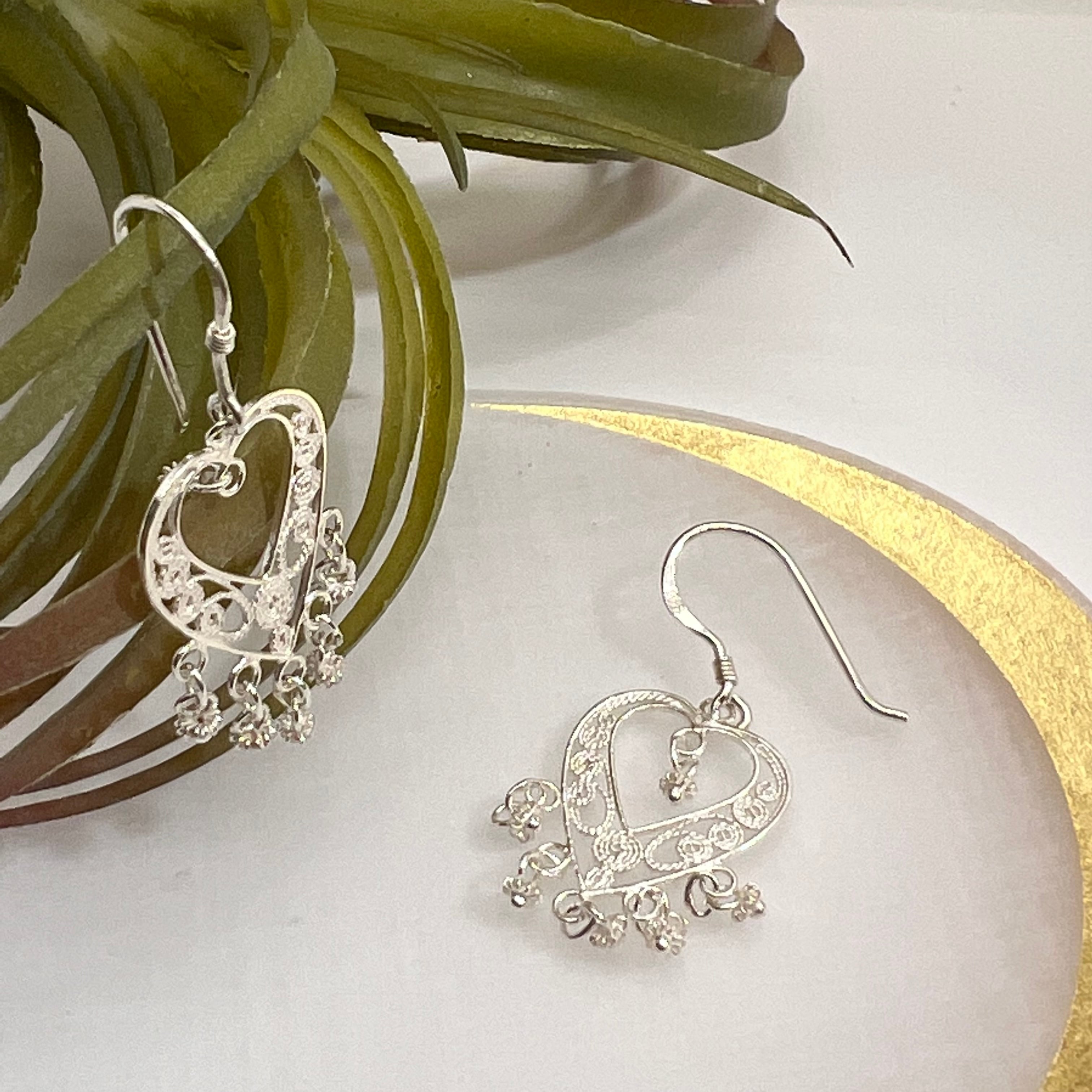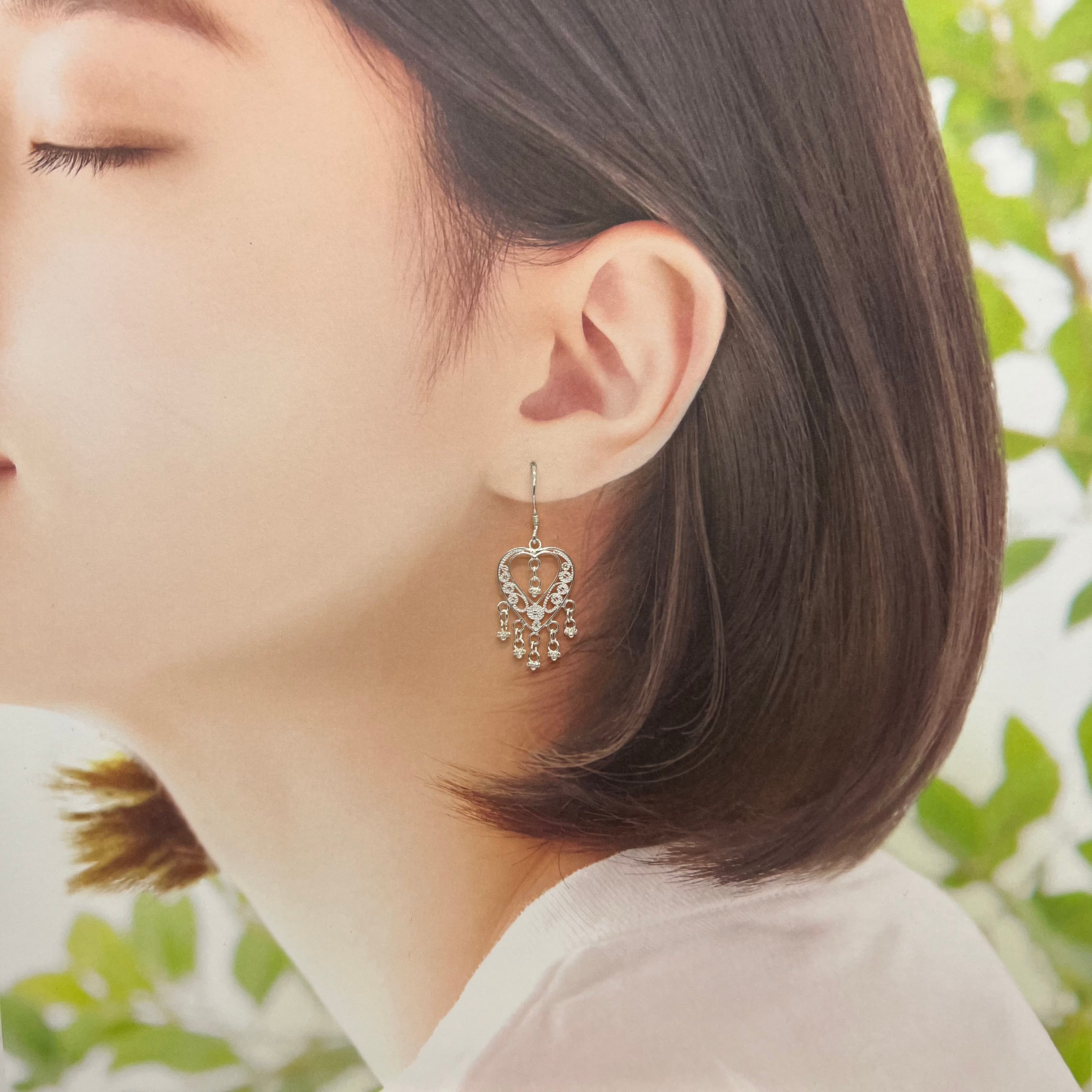 ハートが可愛い♡惚れ惚れする繊細さが魅力✴︎チェンマイフィリグリーシルバーピアス fi01