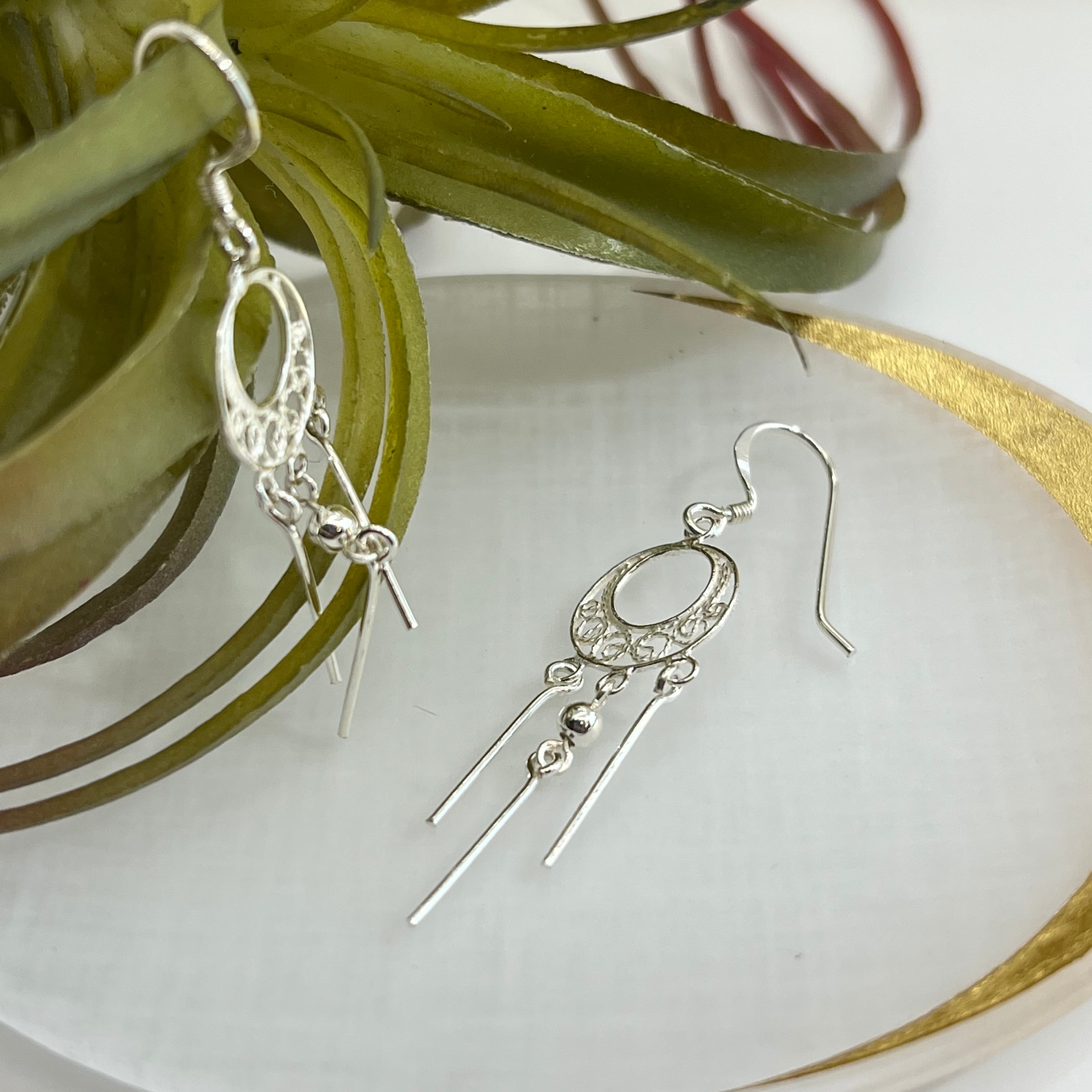 惚れ惚れする繊細さが魅力のチェンマイフィリグリーシルバーピアス。
