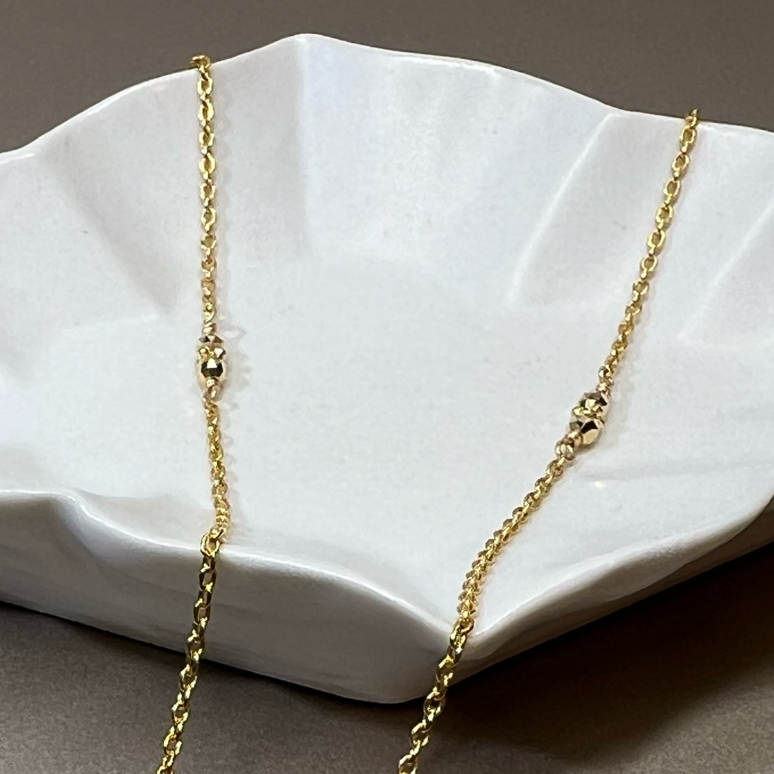 チェーンの間にK18ミラーボールを、エンドにはインカローズをアクセントに添えました。