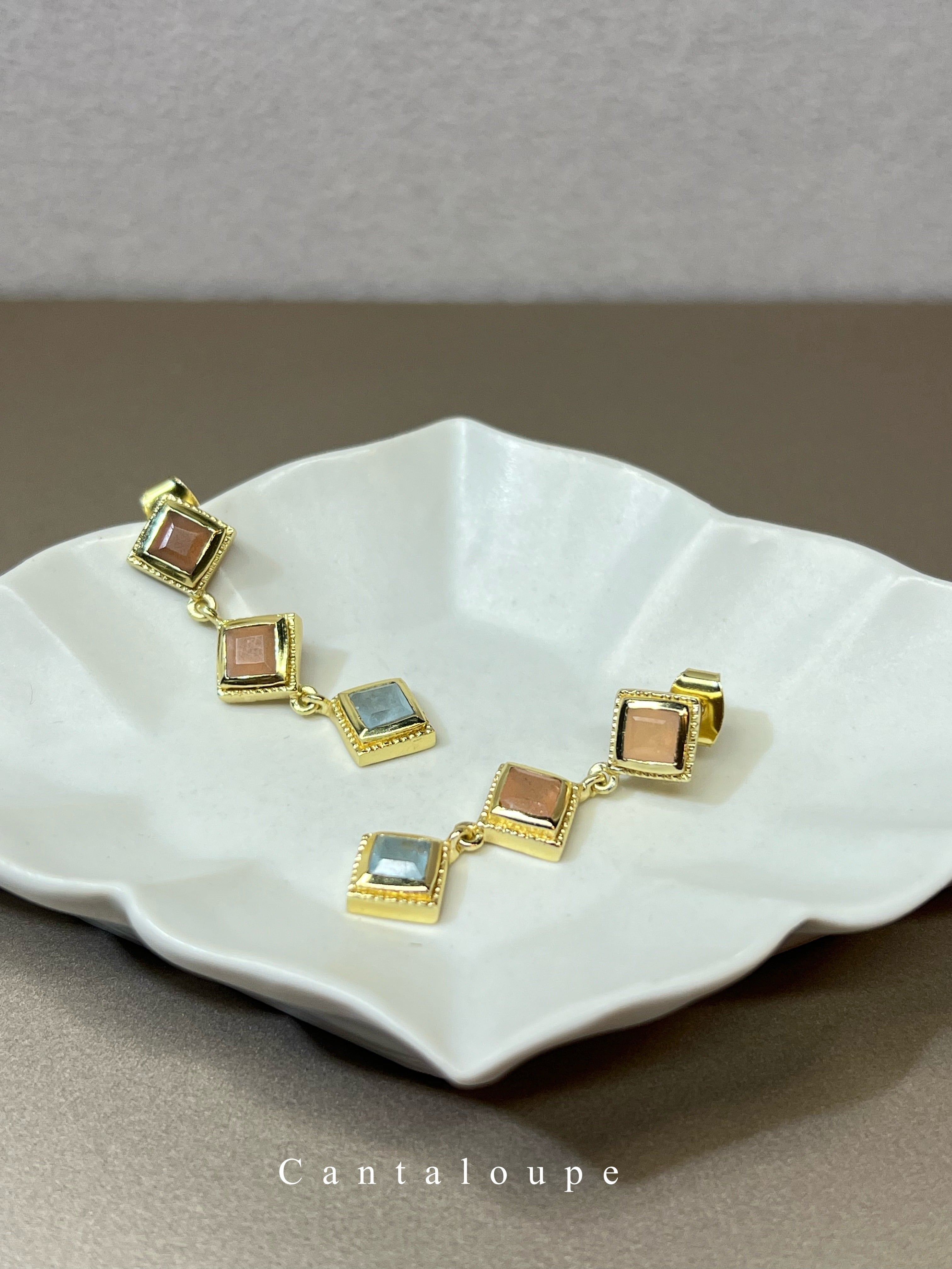 大人可愛い*ピーチムーンストーン&アクアマリンピアス