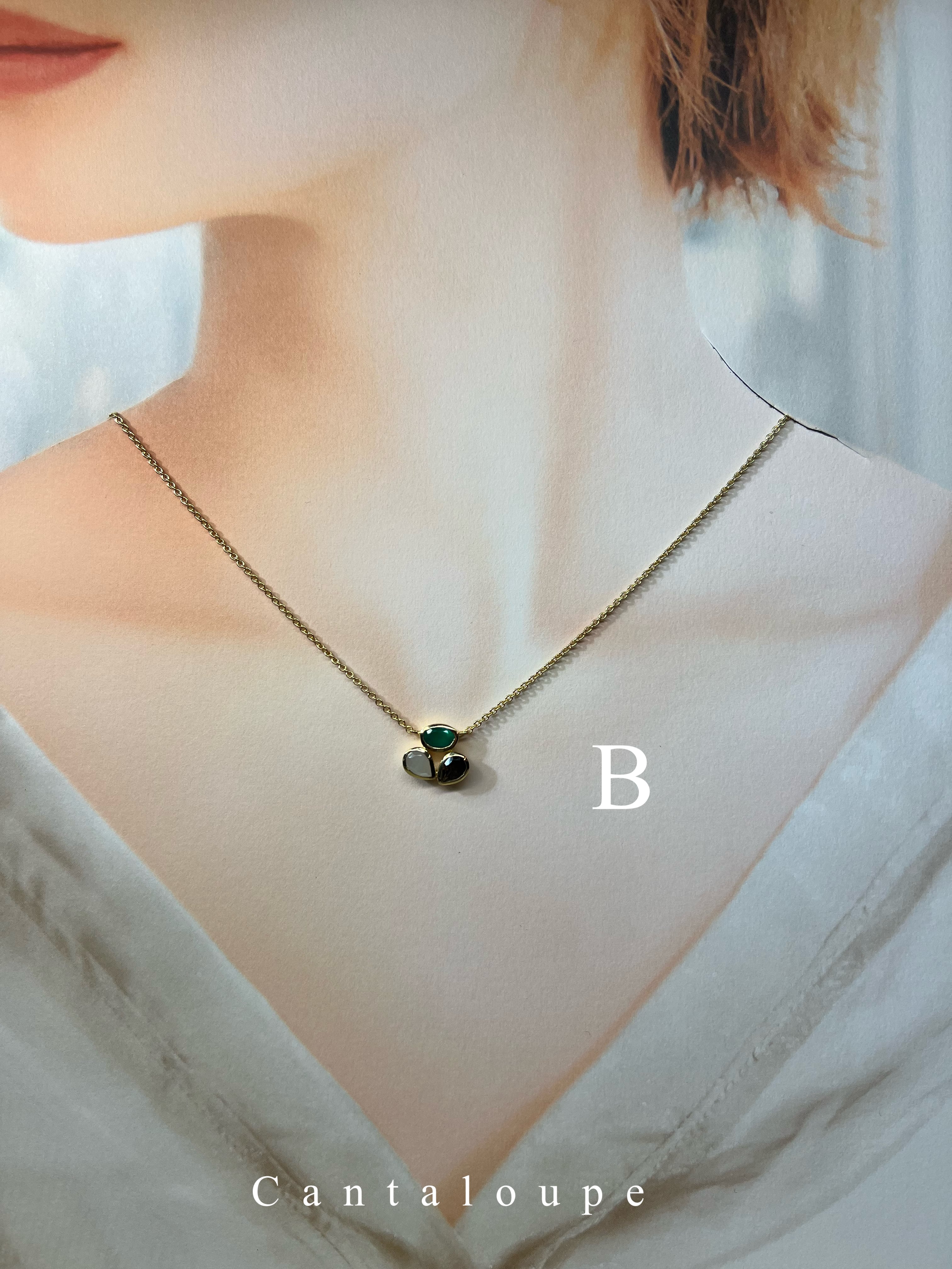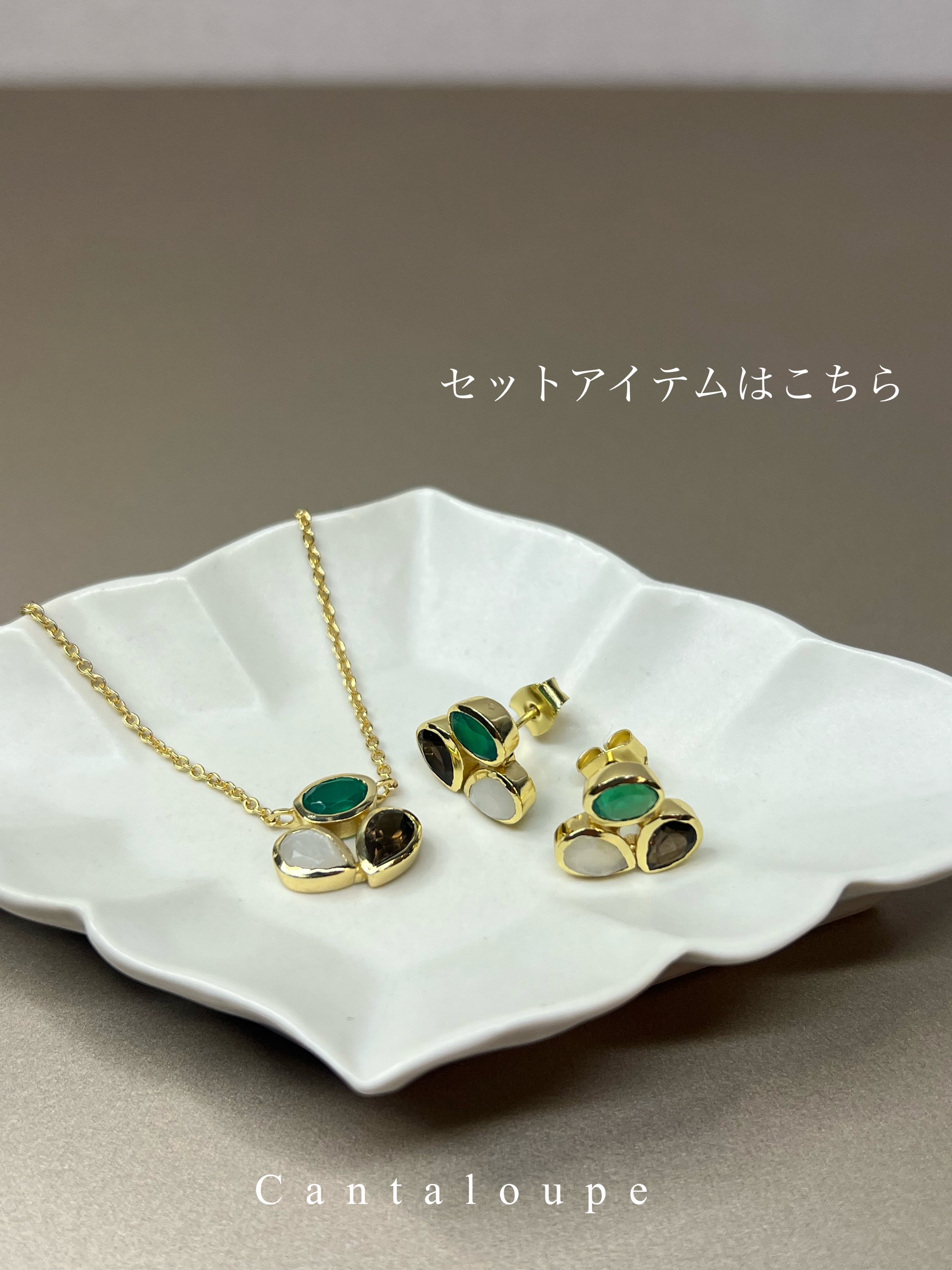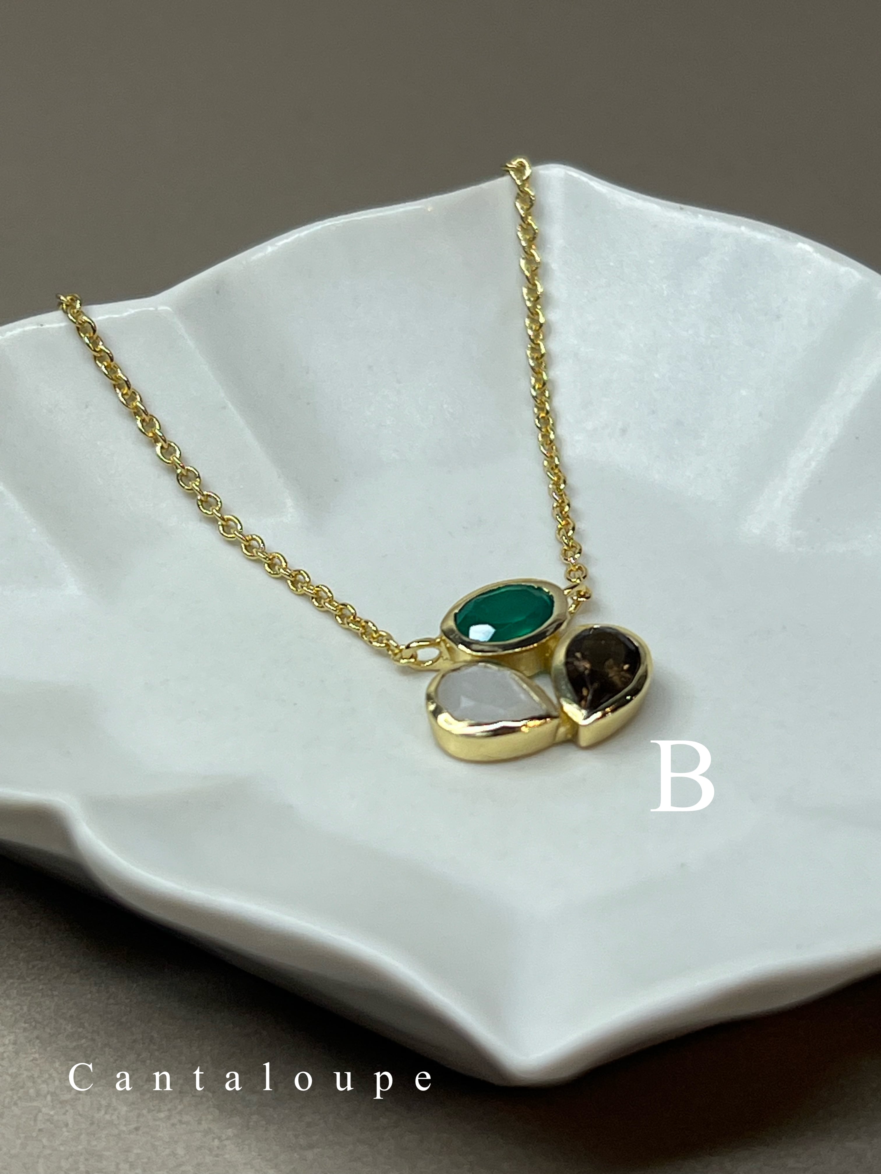 B : グリーンアゲート、ムーンストーン、スモーキークォーツ